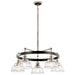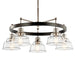 The Eastmont 5 light chandelier is undeniably remarkable. A Walnut Wood wagon wheel with Polished Nickel arms set the scene for the Clear Glass double-tiered shades, making this one of our most sophisticated and versatile fixtures.