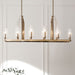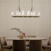 The Kimrose 11 light linear chandelier is an Art Deco masterpiece. Its geometric shapes take center stage in a gorgeous Brushed Natural Brass finish. The shades are Clear Fluted Glass, meaning they're ribbed gently with vertical grooves to produce a subtle lighting effect. For lighting without the effect, simply remove the shades.