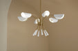 With unique shades inspired by softly cupped leaves and petals, the Arcus 6 light chandelier is as stylish as it is functional. Rotate the shades to direct the light as you wish. It works well in large open spaces, and its dual-finish in champagne bronze and white is a rising trend.