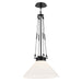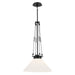 The Albers 1 light pendant's unique look easily adds interest to your space. Its refined black finish complements many design styles, and its knurled detail on the uprights make it truly unique. It comes with a cone-shaped opal glass shade.