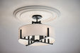 Inspired by the notion of holding and resting, the Malen semi-flush is sheer elegance. Its fabric shade nestles into refined black metal uprights. Its open view from below keeps the bulbs subtly visible as they illuminate your space.
