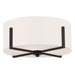 Inspired by the notion of holding and resting, the Malen flush mount is sheer elegance. Its fabric shade nestles into refined black metal uprights. Its satin etched white painted glass bottom softens the light as it illuminates your space.