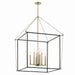 The Eisley foyer pendant's open-framed body design illuminates in a minimalist, modern aesthetic. Its contrasting mixed finish shapes are connected ever-so-slightly with a hook and eye at each corner of the cage. This foyer pendant is constructed without glass, giving the illusion that the fixture is floating.