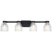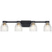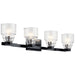 The Vionnet 33.5" 4 light vanity light features a contemporary design in Black and clear glass. A perfect addition in several aesthetic environments including contemporary and transitional.