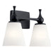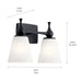 The Cosabella 15" 2 light vanity light embodies Mid-Century modern minimalism. The Etched White Glass shades soften the light to a luxurious glow. The Black cinched stem extends beyond the wall plate to hold the second light, and both the shade and wall plate curve delicately to help make your home an oasis of calm enjoyment.