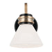 With its refined shape, the Farum 1 light wall sconce is ideal for any setting. Its clean frame showcases subtle stepped detailing and its Opal glass wonderfully illuminates. The black with champagne bronze combination is on-trend.