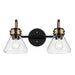With its refined shape, the Farum 2-light vanity complements many bathroom styles. Taking its inspiration from the structural elegance of military jacket tailoring, Farum's clean frame showcases subtle stepped detailing and its clear glass provides ambient lighting to the entire room. Plus, it offers an elegant black with champagne bronze combination that's on-trend. Farum easily incorporates into a variety of environments including modern.