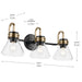 With its refined shape, the Farum 3-light vanity complements many bathroom styles. Taking its inspiration from the structural elegance of military jacket tailoring, Farum's clean frame showcases subtle stepped detailing and its clear glass provides ambient lighting to the entire room. Plus, it offers an elegant black with champagne bronze combination that's on-trend. Farum easily incorporates into a variety of environments including modern.