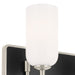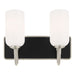 Inspired by simplicity, the Solia 2 light vanity exudes soft modern style. It's dual-finished brushed nickel and black backplate adds visual interest. Solia's refined opal glass illuminates in modern sophistication.