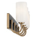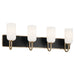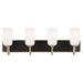 Inspired by simplicity, the Solia 4 light vanity dual-finished champagne bronze and black backplate adds visual interest. Solia's refined opal glass illuminates in modern sophistication.