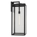 The Branner outdoor wall light brings a hint of cosmopolitan to your home's exterior. Its strong form in textured black sets the stage for the unique T-shape bulb. Its thicker clear glass panes are both sturdy and stylish.