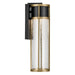 The Camillo LED outdoor wall light is modern and refined. Its vertical louvers encase clear seeded glass, giving it a dimension that makes you look twice. Dual finishing in textured black and natural brass enhances your outdoor space.