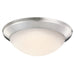 The Ceiling Space 14" 1 light flush mount features a classic look with Brushed Nickel finish and satin etched cased opal glass. The Ceiling Space flush mount is perfect in several aesthetic environments including modern, traditional and transitional.