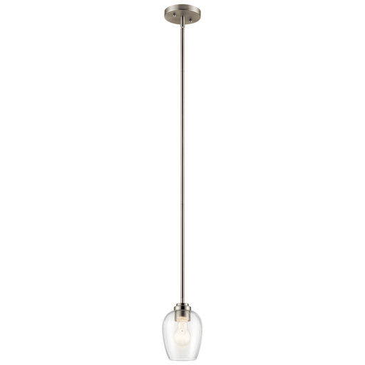 View full detailsKichler 42047NI One Light Pendant, Brushed Nickel