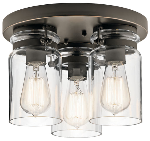Brinley 11.75" 3 light flush mount features a modern vintage look with its Olde Bronze finish and clear glass. Inspired by mason jars, the Brinley ...