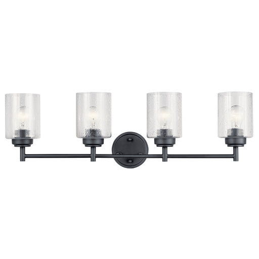 The modern Winslow 4-light 30" bath light in a Black finish with Clear Seeded glass shade pair beautifully with the linear arms, bringing light and...