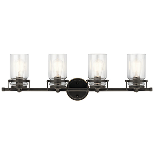 Brinley 32.25" 4 light vanity light features a modern vintage look with its Olde Bronze finish and clear glass. Inspired by mason jars, the Brinley...