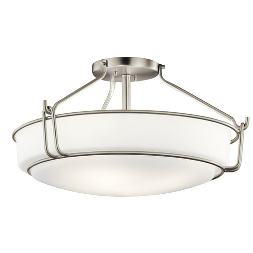 View full detailsKichler 44086NI Four Light Semi Flush Mount, Brushed Nickel