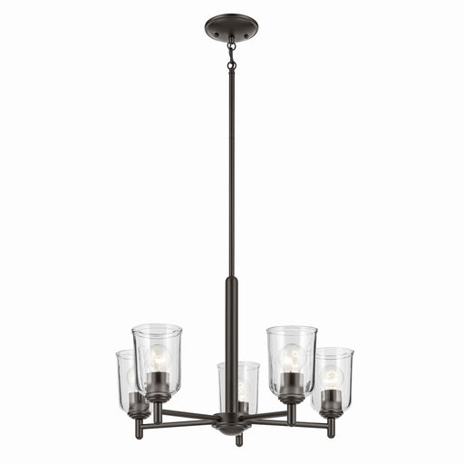 The Shailene 18.25" 5 light chandelier features a classic look with its clean lines in Olde Bronze finish and satin etched glass. The Shailene chan...