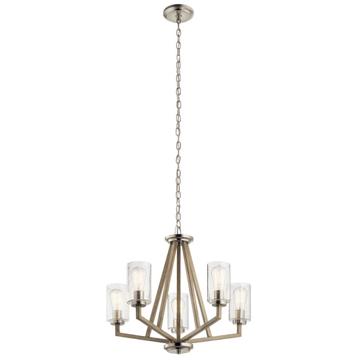 The Braelyn 11.25" 5 light chandelier features a Classic Pewter finish and clear seeded glass shades. The Braelyn offers a vintage industrial desig...