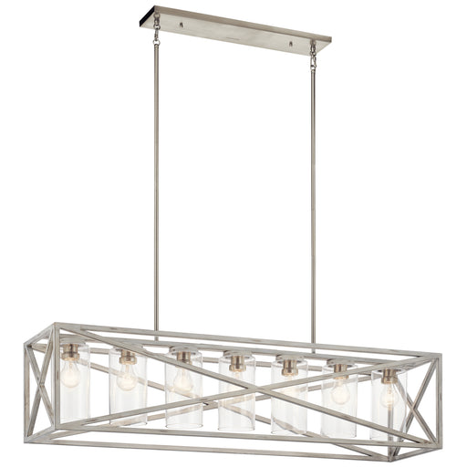 View full detailsKichler 44082DAW Seven Light Linear Chandelier, Distressed Antique White