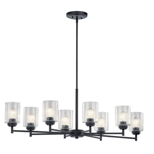 The modern Winslow 8 light chandelier in a Black finish with Clear Seeded glass shade pair beautifully with the linear arms, bringing light and dim...