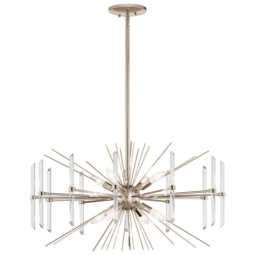 The Eris 16.75" 8 light chandelier has long spiked stems diverge from a polished nickel finish spherical ball while vertically placed crystal rods ...