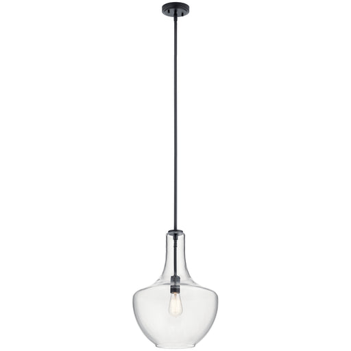 The Everly 19.75ââ¬ï¿½ one light bell shaped pendant comes with a curved, glass blown shade featuring a clear glass and a Black finish for a simp...