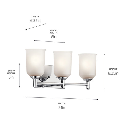The Shailene 21" 3 light vanity light features a classic look with its clean lines in Chrome finish and satin etched glass. The Shailene vanity lig...