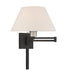 Add this versatile swing arm wall lamp bedside or above a favorite reading chair to enjoy more light where you need it. The black finish with brushed nickel accent is transitional while the oatmeal fabric shade offers subtle texture.