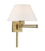 Add this versatile swing arm wall lamp bedside or above a favorite reading chair to enjoy more light where you need it. The antique brass finish is transitional while the off-white fabric shade offers subtle texture.