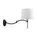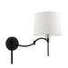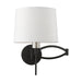 The easy combination of gentle curves and straight lines bring the perfect balance to this plug-in/hardwired swing arm wall lamp. In a black finish with a brushed nickel finish accent and a hand crafted off white hardback shade, this transitional lamp is handsome and just right for bringing functional lighting style to any home.