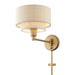 The Gladstone swing arm wall lamp is both modern and versatile. The hand-crafted ash gray colored fabric hardback shade sets a pleasant mood. The one-light double shade adds character to this handsomely styled swing arm wall light. This sleek design is shown in an antique gold leaf finish.