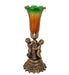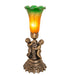 Inspired by the famous Tiffany design from the early 1900s. This mini lamp features a stunning shade mouth blown of Amber and Green art glass. The Pond Lily shade is embraced by an elegant cast base featuring two cherubs finished by hand in Antique Brass. The Pond Lily Mini Lamp is featured in our American designed, handcrafted Favrile Glass Collection. UL and cUL listed for dry locations. Each shade is a unique work of art with color variations based on natural ingredients inherent in the glass. Contact us if color matching is critical when ordering multiple items.