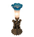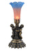 Inspired by the famous Tiffany design from the early 1900s. This mini lamp features a stunning shade that is mouth blown of Pink and Blue art glass. The Pond Lily shade is embraced by an elegant cast base featuring two cherubs finished by hand in Antique Brass. The Pond Lily Mini Lamp is featured in our American designed, handcrafted Favrile Glass Collection. UL and cUL listed for dry locations. Each shade is a unique work of art with color variations based on natural ingredients inherent in the glass. Contact us if color matching is critical when ordering multiple items.