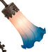 Inspired by Tiffany's famous Pond Lily design from the early 1900s... This table lamp is created with two mouth blown shades featuring Pink and Blue art glass. The Pond Lily shades are embraced by an elegant Cast Bronze Base featuring a girl under a trellis and finished in a rich Mahogany patina. The Pond Lily Table Lamp is featured in our American designed, handcrafted Favrile Lighting Collection. UL and cUL listed for dry locations. Each shade is a unique work of art with color variations based on natural ingredients inherent in the glass. Contact us if color matching is critical when ordering multiple items.