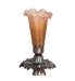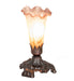 One of the most popular Louis Comfort Tiffany style designs... This Pond Lily mini lamp offers an attractive, delicate design featuring a mouth blown shade created with Amber and Purple art glass. The shade is seated in an elegant base finished by hand in Mahogany Bronze. The Pond Lily Mini Lamp is featured in our American designed, handcrafted Favrile Glass Lighting Collection. UL and cUL listed for dry locations. Each shade is a unique work of art with color variations based on natural ingredients inherent in the glass. Contact us if color matching is critical when ordering multiple items.