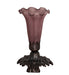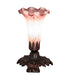 Re-creating Tiffany's famous Favrile design from the early 1900's. This mini lamp offers an attractive, delicate design featuring a shade that is mouth blown of Cranberry art glass. The Lily shade is seated in an elegant Victorian metal base finished by hand in Mahogany Bronze. UL and cUL listed for dry locations. The Pond Lily Shade is featured in our American designed, handcrafted Favrile Lighting Collection. Each shade is a unique work of art with color variations based on natural ingredients inherent in the glass. Contact us if color matching is critical when ordering multiple items.