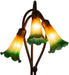 One of the most popular Louis Comfort Tiffany styled lamps on the market today, recreating his famous Favrile design from the early 1900's. offers an attractive, delicate design featuring shades mouth blown of fine art glass. Lily shades are suspended from stems delicately winding above a Lily pad base finished by hand in Mahogany Bronze.