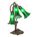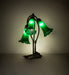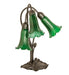 Inspired by Tiffany's famous Pond Lily design from the early 1900s... This table lamp is created with three mouth blown shades featuring Green art glass. The Pond Lily shades are embraced by an elegant Cast Metal Base featuring a Mahogany Bronze finish. The Pond Lily Table Lamp is included in our American designed, handcrafted Favrile Lighting Collection. UL and cUL listed for dry locations. Each shade is a unique work of art with color variations based on natural ingredients inherent in the glass. Contact us if color matching is critical when ordering multiple items.