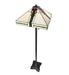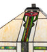 The classic American lamp design to complement your home. The art glass shade features a single Bungalow Red Poppy with Moss Green leaves on a Sunkissed Beige background with striking geometrics on the skirt. The art glass shade is complemented with a decorative Mission styled floor base that is accentuated in a Mahogany Bronze finish.