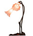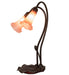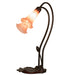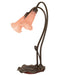One of the most popular Louis Comfort Tiffany styled lamps on the market today, recreating his famous Favrile design from the early 1900's. This softly mottled Petal Pink shaded Two Light Accent Lamp offers an attractive, delicate design featuring shades mouth blown of fine art glass. Lily shades are suspended from stems delicately winding above Lily pads bases finished by hand in Mahogany Bronze.