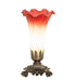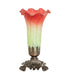 Inspired by the famous Tiffany design from the early 1900s. This mini lamp features a stunning shade mouth blown of Seafoam and Cranberry art glass. The Pond Lily shade is embraced by an elegant Victorian cast metal base finished by hand in Mahogany Bronze. The Pond Lily Table Lamp is featured in our American designed, handcrafted Favrile Glass Collection. UL and cUL listed for dry locations. Each shade is a unique work of art with color variations based on natural ingredients inherent in the glass. Contact us if color matching is critical when ordering multiple items.