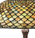 A Tiffany Studios classic. The Fishscale pattern is reproduced in variegated glass of Honey dripped Emerald, Sapphire, Amber and Mauve, evoking a unique dimensional and textured look in a rainbow of brilliant hues. This exquisite art glass shade is complemented with a Mahogany Bronze hand finished lamp base. This exquisite variegated art glass shade is created using the famous Meyda Tiffany copperfoil construction process. UL and cUL listed for dry locations. Each shade is a unique work of art with color variations based on natural ingredients inherent in the glass. Contact us if color matching is critical when ordering multiple items.