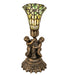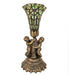 Inspired by the famous Tiffany design from the early 1900s. This mini lamp features a stunning shade created of fine Green art glass using the famous Meyda Tiffany copperfoil construction process. The Pond Lily shade is embraced by an elegant cast base featuring two cherubs finished by hand in Antique Brass. The Pond Lily Table Lamp is featured in our American designed, handcrafted Stained Glass Lighting Collection. UL and cUL listed for dry locations. Each shade is a unique work of art with color variations based on natural ingredients inherent in the glass. Contact us if color matching is critical when ordering multiple items.
