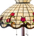 Grace your home with this elegant floor lamp featuring a crowned art glass shade. The shade highlights a gridwork of Beige Art Glass, adorned with a Mauve Waterglass border of swirling ribbons and perfect Red rosebuds accented with Green leaves. The stained glass shade is created with the famous Meyda Tiffany copperfoil construction process and complemented with an elegant cast metal floor base in a Mahogany Bronze finish. This lighting design is inspired by famous rose gardens in the New York Botanical Garden in Bronx Park, New York City, to the White House in Washington, D.C. It is ideal for placement in residential and hospitality spaces to create a beautiful design statement. The Roseborder Floor Lamp is featured in our American-designed, handcrafted Stained Glass Lighting Collection. UL & cUL listed for dry locations. Each shade is a unique work of art with color variations based on natural ingredients inherent in the glass.