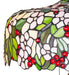 Cardinal Red jewel cherries glisten between Rosy Pink flowers and Verdant Green leaves in our version of the Tiffany Studio's cherry blossom. The cascading blooms and fruit form the undulating edge of this colorful and intricately patterned stained glass shade. This lovely shade rests on a Mahogany Bronze hand finished table lamp base.