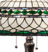 Emerald-colored jewels and Multi colored granite glass bands accent this stunning Bone Beige art glass reproduction of a famous Louis Comfort Tiffany design. The Tiffany Roman shade is inspired by Italian art and architecture and handcrafted of authentic stained glass using the famous Meyda Tiffany copperfoil construction method. The table lamp features a base finished in a hand applied Mahogany Bronze. UL and cUL listed for dry locations.