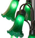 One of the most popular Louis Comfort Tiffany styled lamps on the market today, recreating his famous Favrile design from the early 1900's. This softly mottled Emerald Green shaded Twelve Light Floor Lamp offers an attractive, delicate design featuring shades mouth blown of fine art glass. Lily shades are suspended from stems delicately winding above a Lily pad base finished by hand in Mahogany Bronze.