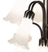 One of the most popular Louis Comfort Tiffany styled lamps on the market today, recreating his famous Favrile design from the early 1900's. This mottled Winter White shaded Twelve Light Floor Lamp offers an attractive, delicate design featuring shades mouth blown of fine art glass. Lily shades are suspended from stems delicately winding above a Lily pad base finished by hand in Mahogany Bronze.